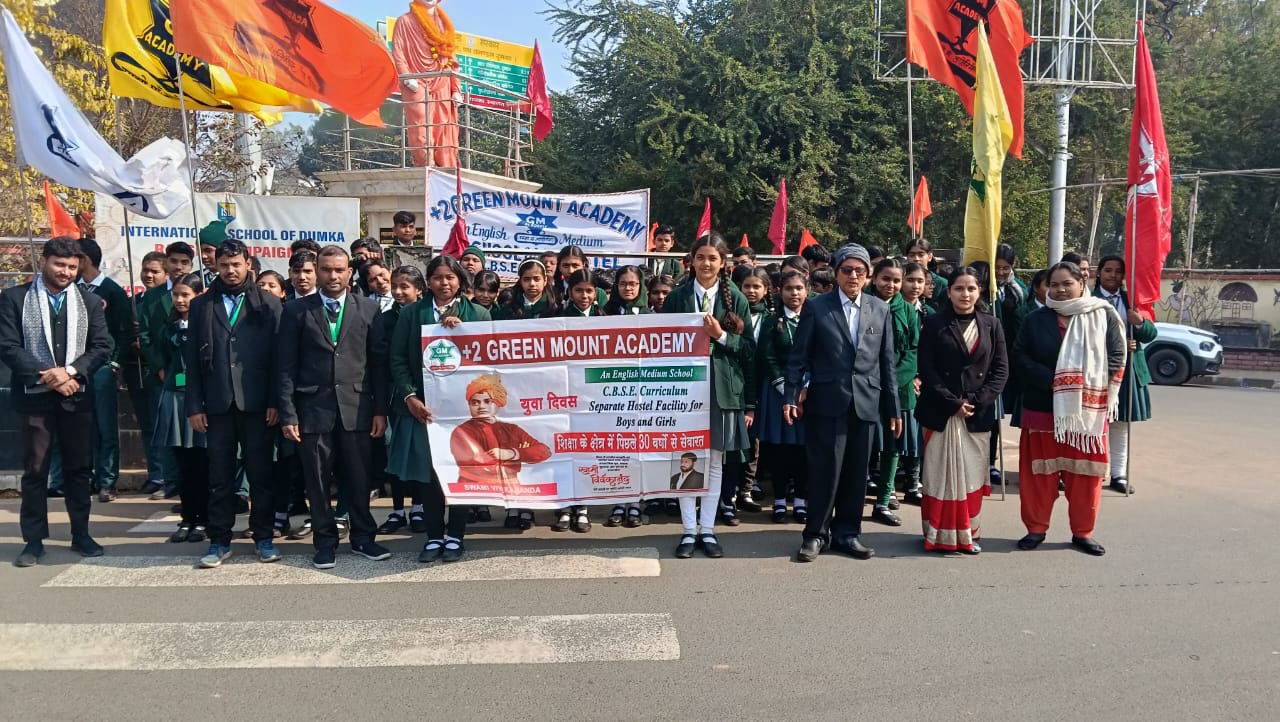 | राष्ट्रीय युवा दिवस के रूप में स्वामी विवेकानंद जयंती ग्रीन माउंट अकैडमी परिवार में बड़े ही हर्षोल्लास के साथ मनाई गई। सभी शाखाओं में स्वामी विवेकानंद जी के तस्वीर पर फूल माला चढ़ाया गया तथा मेन ब्रांच जेल रोड के बच्चों द्वारा एक भव्य झांकी निकाली गई जो उनके प्रतिमा के समकक्ष पहुंचकर प्रतिमा पर माल्यार्पण किया। सभी शिक्षकों तथा बच्चों ने उनके द्वारा बताएं मार्ग का आत्मसात किया ।विद्यालय के सचिव डॉक्टर करुण कुमार राय ने स्वामी विवेकानंद के जीवन पर प्रकाश डाला तथा सभी को देश सेवा के लिए प्रेरित किया। |